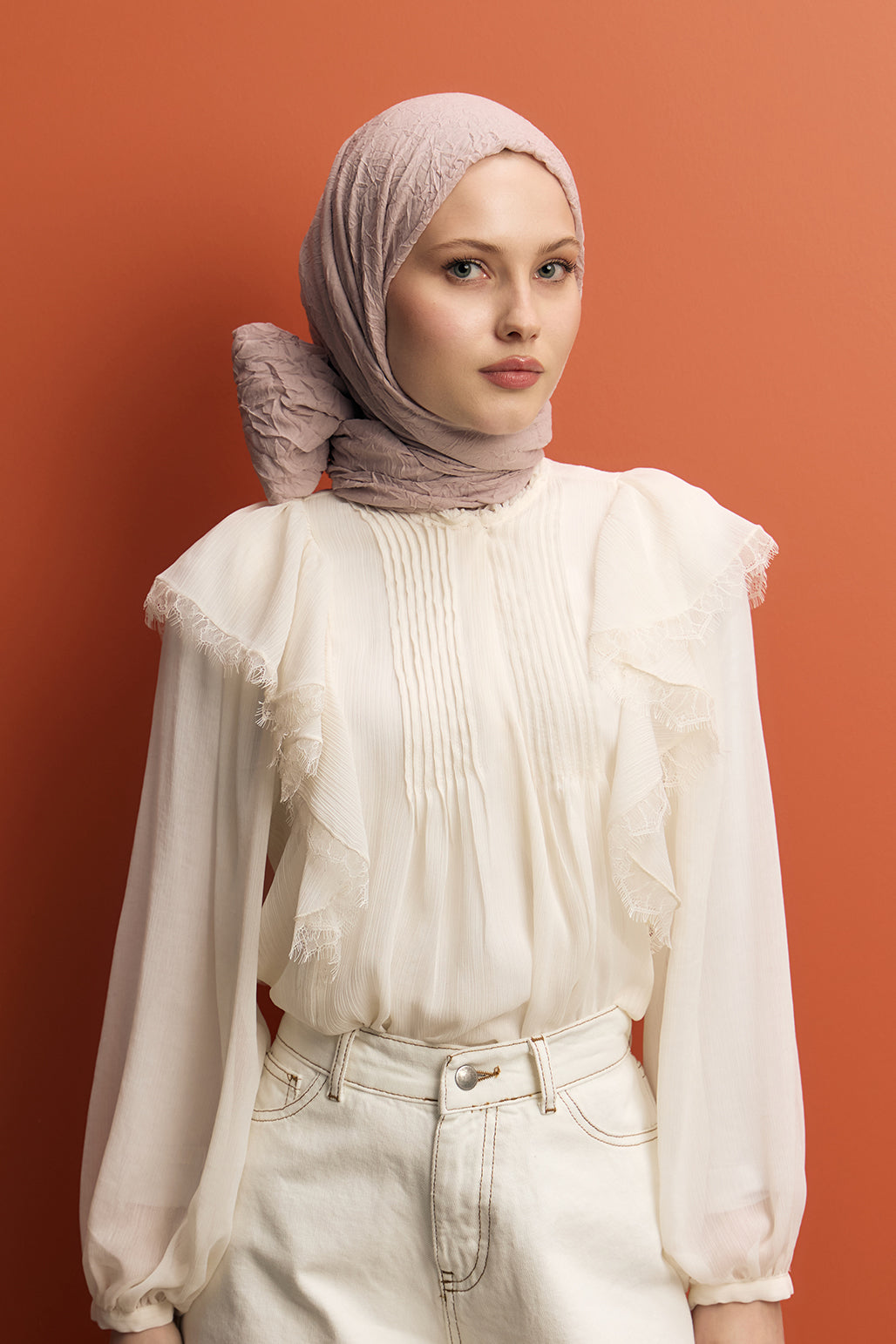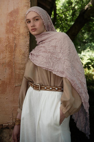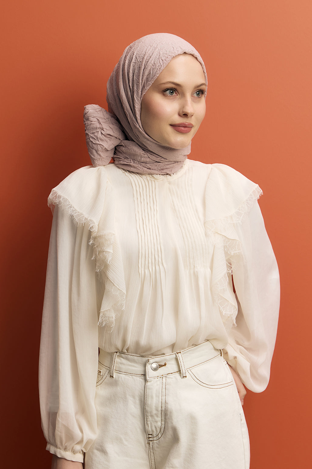The Vual Krash Shawl stands out with its unique wrinkled texture and iron-free convenience, making it a practical choice that you can effortlessly grab from your closet and wear immediately. Its soft fabric feels gentle on the skin, offering comfort throughout the day with its lightweight and breathable design.